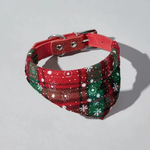 Add a touch of holiday cheer to your pup's wardrobe with our Jingle Paws bandana collar! Featuring a charming holiday design, this adjustable collar combines the style of a bandanna with the functionality of a collar. Perfect for Christmas celebrations, family photos, or daily walks, it ensures your furry friend looks their best all season long