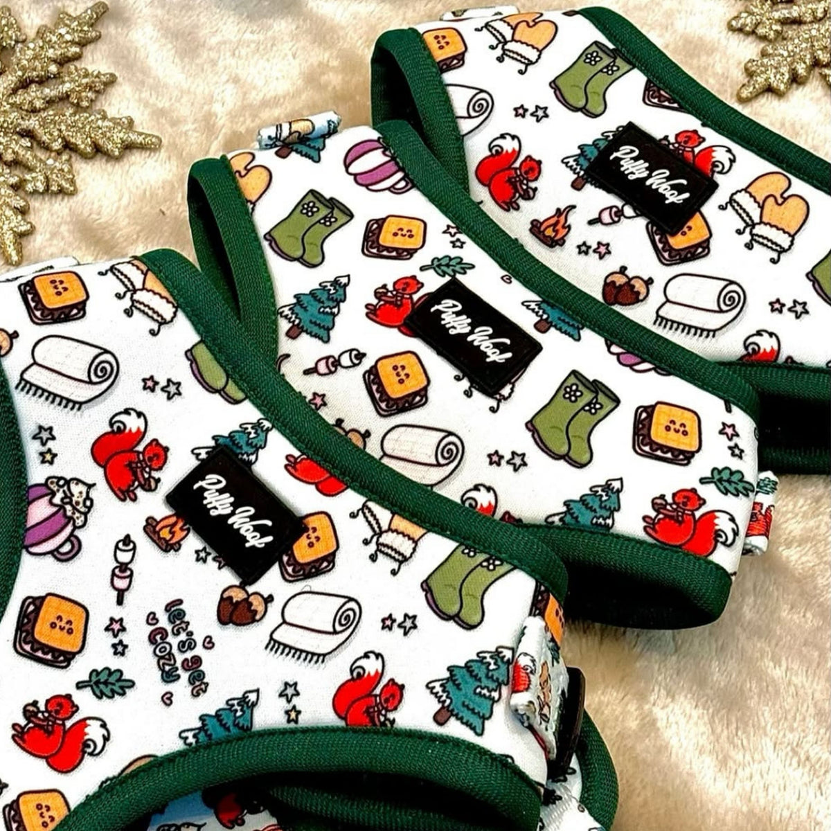 Pair the harness with the matching leash, poo bag pouch and bowtie from the Brownie Gets Cozy collection for a coordinated walk set.