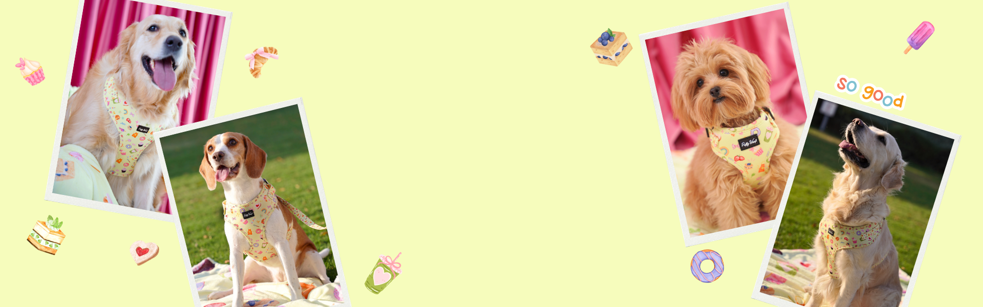 Inspired by Chloe’s unapologetic love for treats and all things sweet, the Chloe Cupcakes Collection brings playful charm and everyday practicality together in one coordinated set. With pastel tones, dessert-inspired illustrations and whimsical details, this collection is designed for pups who believe walks should feel as joyful as treat time.