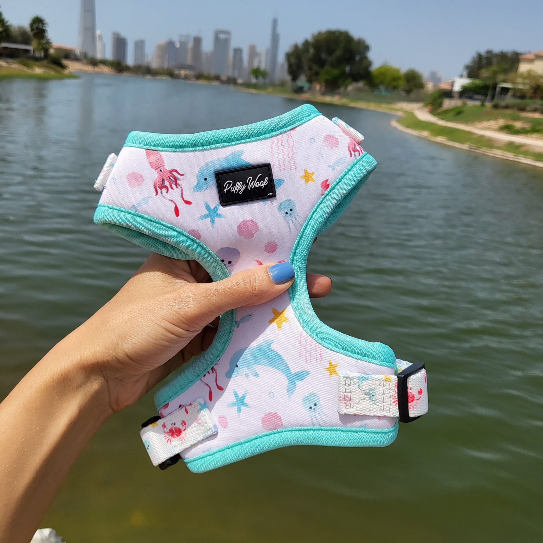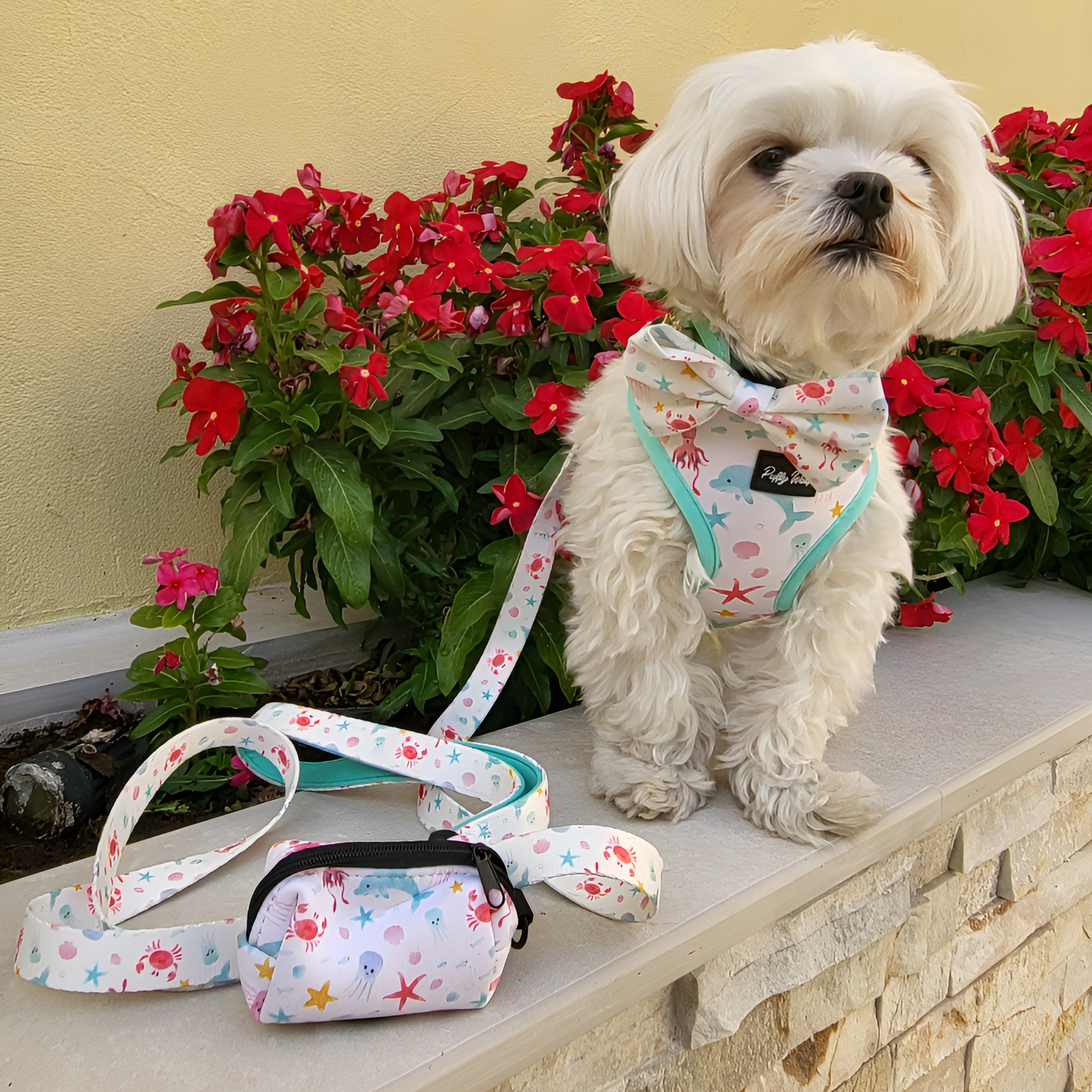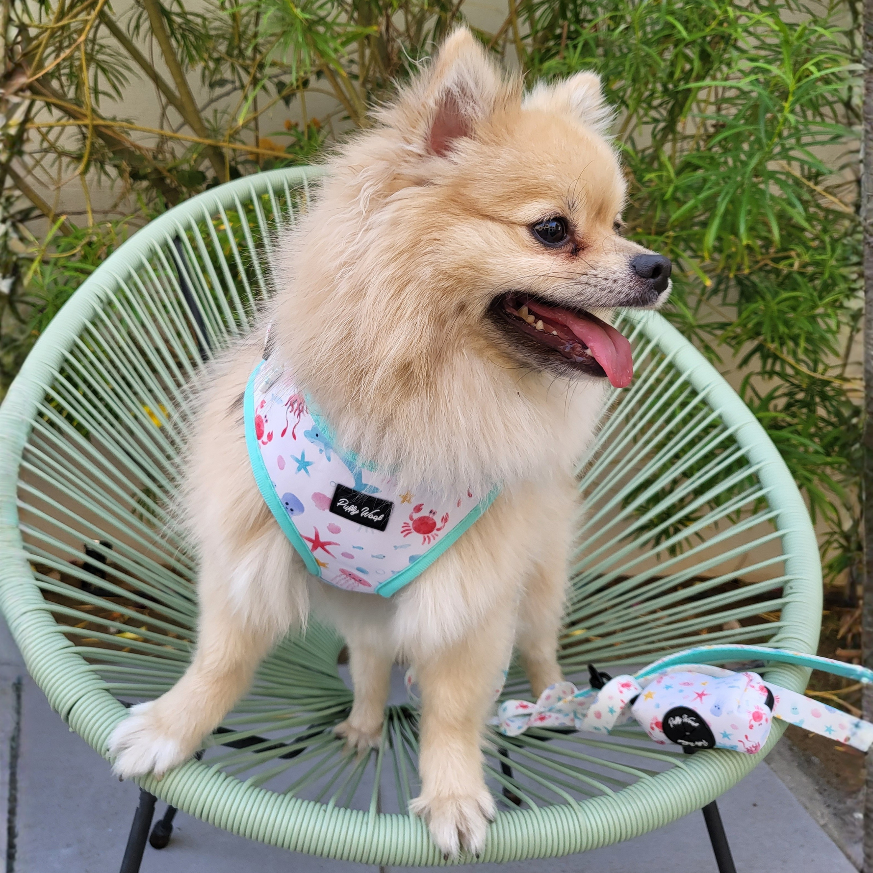 Pair the harness with the matching leash and poo bag pouch from the Frisky & the Sea collection for a coordinated walk set.