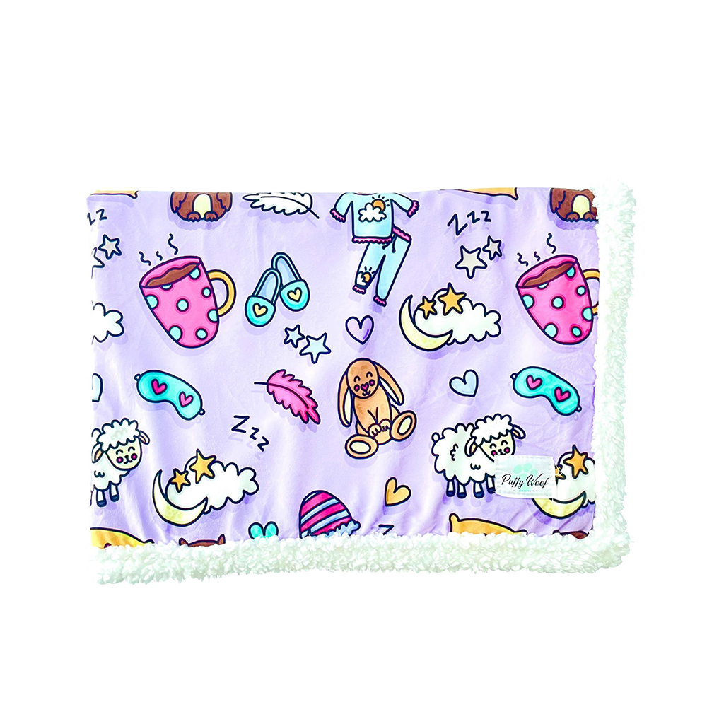 • Soft and snuggly blanket made out of minky sherpa.