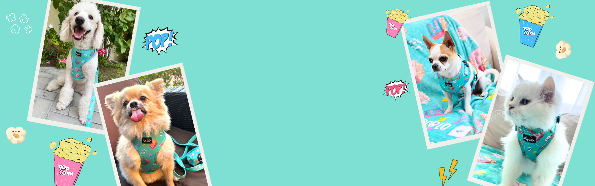 Sweet Pupcorn – Lucas is inspired by his tender heart and warm spirit. Playful yet soothing, this collection brings together light-hearted illustrations and a comforting colour palette that reflects Lucas’ gentle nature. It’s designed for pups who love closeness, kindness and calm moments — where every walk feels easy and every pause feels familiar.